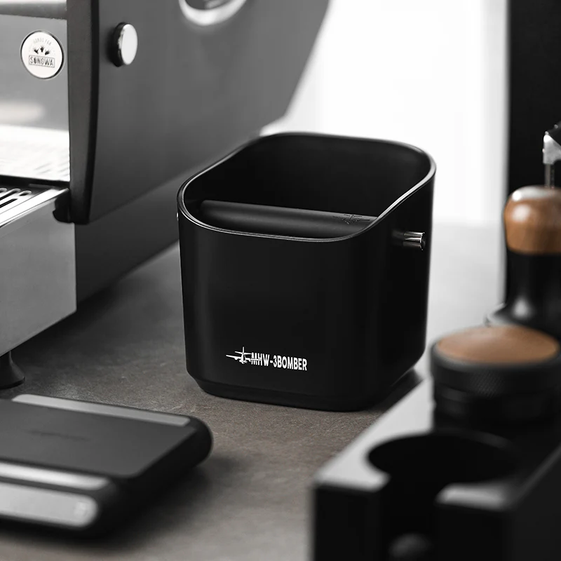 The MHW-3BOMBER Coffee Espresso Square Knock Box is a sturdy and convenient piece of coffee equipment, with a non-slip base and protective design for your portafilters.